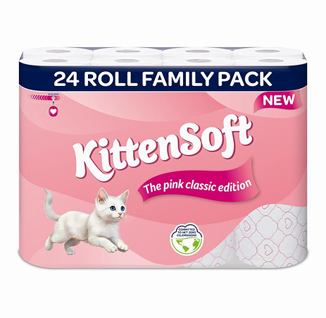 The purrfect choice for you & your family. Featuring 2 super soft layers for care and comfort every day. KittenSoft The Pink Classic Edition toilet roll doesn’t just provide everyday care; these toilet rolls are made with FSC® certified materials from responsibly managed forests, reflecting a dedication to sustainability.